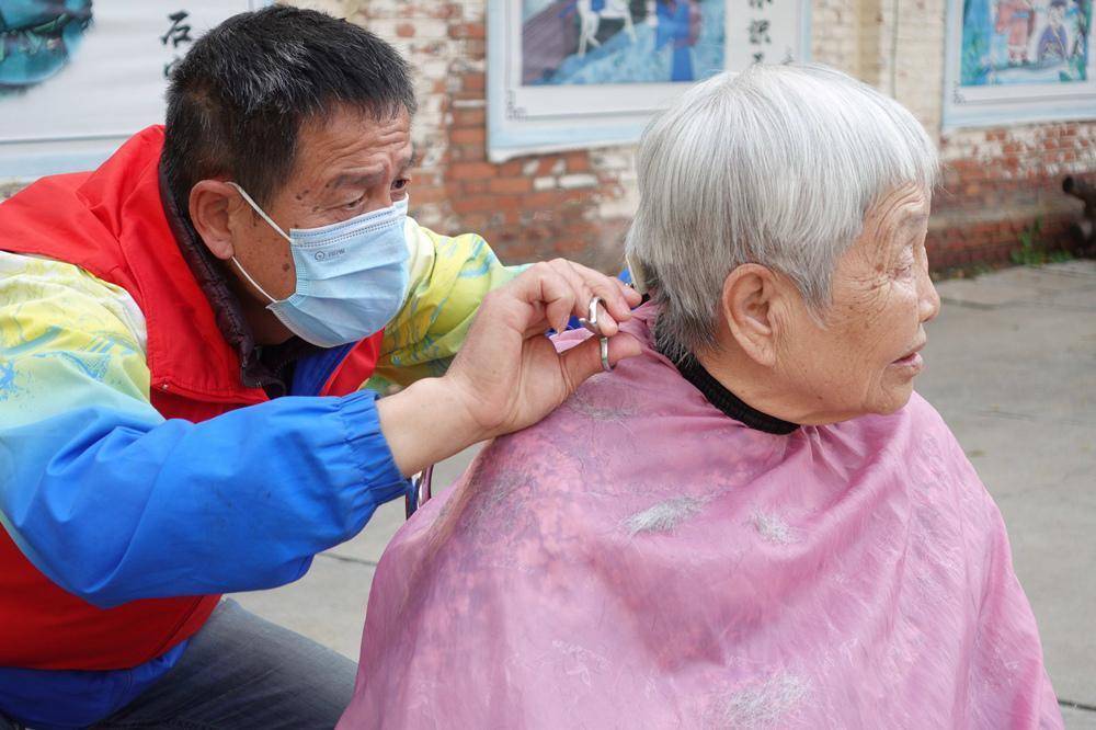 志愿者为老人理发。傅新春摄