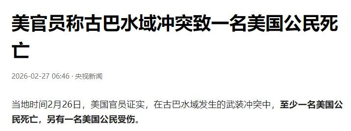1、2026-02-27 央视新闻 美官员称古巴水域冲突致一名美国公民死亡